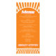 Esta tarjeta MENU para un boda es la manera perfecta de añadir unas vibraciones divertidas y retro al día especial. El diseño de arco único en la parte delantera de la tarjeta presenta una combinación de colores naranja y blanco brillante con rayos de sol ondulantes y texto personalizado con un tipo de letra vintage. La parte trasera de la tarjeta está cubierta con un bonito patrón de nombres de la pareja en blanco sobre un fondo naranja. Es una forma elegante e inolvidable de dar a los clientes un vistazo a la carta del boda.