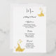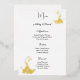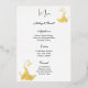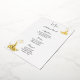 Relieve metalizado dorado dorado real Esta tarjeta de menú boda se muestra en una elegante impresión de pavo real en Relieve metalizado blanco y dorado, guión y texto estándar en color negro. Personalice este elemento y cambie el texto al suyo con esta plantilla. Elija su cantidad, disponible en más de 500 tarjetas más una imagen de descuento.