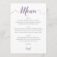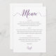 Menú boda editable e imprimible para temas bodas púrpura. Consulte el resto de la Purple Collection para ver el papel y los signos del día de la boda.