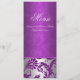 Esta elegante tarjeta de menú de damasco de plata y púrpura en papel básico coincide con la invitación y otros elementos que se muestran a continuación. Si necesita cualquier otro elemento coincidente, envíe su solicitud a niteowlstudio@gmail.com.