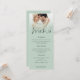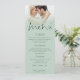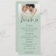 Descarga Digital Imprimible o Elegante Guión Elegante Impreso Menú Boda Verde Sage. Un diseño moderno con tu foto en el borde superior detrás de una capa tintada graduada con el texto parcialmente colocado en la parte superior de tu imagen hacia abajo. El encabezado principal está en un guión con estilo y el resto del texto que puede personalizar fácilmente.