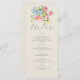 Añada un toque romántico y fresco a su recepción con este elegante menú de bodas primaverales. Flores naturales de suave acuarela de color rosa pastel, amarillo, azul y verde, esta plantilla de menú vertical se completa perfectamente con el jardín de primavera, los bodas rústicos y de temática boho. Podrá elegir entre deliciosos entrantes, platos principales y postres en un diseño elegante y fácil de leer.