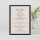 Tarjeta de menú de boda con dinero antiguo diseñada para una recepción de lujo chic y atemporal. Este elegante menú clásico negro refleja la estética de lujo discreto adorada por novias sofisticadas que planean celebraciones refinadas de mansión o inspiradas en Europa. Perfecto para cenas de etiqueta, mansiones de jardín o recepciones con velas. Estilo con corredores de mesa de lino, sellos de cera o tarjetas de lugar con caligrafía para una decoración de mesa atemporal y heredable.