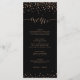 Tarjeta de menú con brillo de oro y purpurina negr