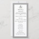 El diseño del Verso de la Biblia Católica enmarcado presenta el símbolo católico para Cristo, junto con la cruz como imagen central superior. La imagen de las ramas de palmera aparece justo debajo. El menú personalizable se muestra delante. El reverso muestra un mensaje personal de la pareja recién casada, junto con un verso biblial elegido. A continuación se muestran los nombres de la pareja y la fecha del boda. Todo el diseño está enmarcado por un bonito borde blanco y plateado. Diseñado para coordinar con la Suite Boda Verse de la Biblia Católica Enmarcada.