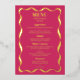 Celebre con estilo con estas tarjetas de menú boda a la plancha de Relieve metalizado muy modernas, de estilo retro. El diseño es fácil de personalizar con su propia redacción de menú y sus huéspedes estarán encantados cuando vean estos fabulosos menús en su boda. En la colección se pueden encontrar más opciones de color y elementos coincidentes.