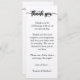 Estas tarjetas de agradecimiento de la mesa están agregando un toque especial a su gran evento! La parte delantera es una tarjeta de agradecimiento y los Wordings, los Nombres son editables. La parte posterior es el menú y los nombres y descripciones de los cursos son editables.