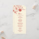 Rama de arte lineal de magnolia roja y símbolo de doble felicidad rojo sobre fondo crema. Con los nombres personalizados de novia y novio, la fecha de la boda y un texto de menú personalizado. En el reverso están las iniciales para cambiar.