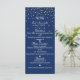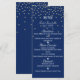 Tarjeta de menú de boda con confeti diminuto azul y dorado
