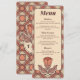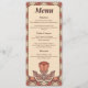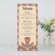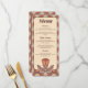 Presenta tu banquete de bodas con distinción utilizando este elegante menú de boda de estilo retro. Con una composición inspirada en Art Nouveau y una paleta de tonos terrosos de mediados de siglo, este diseño incluye una hermosa ilustración botánica y un marco arqueado que aporta un toque artístico a tu mesa.