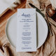 Esta carta marinera, sencilla y caligráfica, boda para la cena, es perfecta para una boda elegante. El diseño blanco y azul presenta una tipografía rústica de moda y un bonito corazón romántico.