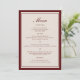 Tarjeta de menú de boda de otoño borgoña en un diseño clásico inspirado en el Dinero Antiguo — una elección refinada para recepciones de boda elegantes de otoño e invierno. Inspirado en la estética de Lujo Silencioso, Herencia de Estado y Editorial Clásico. Perfecto para parejas que aman la papelería tradicional y coordinada. Estiliza con manteles de terciopelo, centros de mesa con velas y flores borgoña profundas para crear un ambiente sofisticado de boda de otoño.