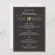 Tarjeta de menú de boda elegante de oro negro moderno.