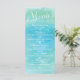 Tarjeta de menú de boda elegante de playa azul acu