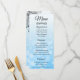 Tarjeta de menú de boda elegante decorativa azul Bokeh