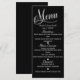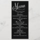 Tarjeta de menú de boda elegante en negro y blanco.