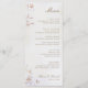 Esta tarjeta de menú de boda floral boho presenta flores silvestres sólidas, nombres de guión y tipos de letra clásicos. Las flores primaverales hacen que esta invitación sea bohemia. Perfecta para una boda inspirada en el vintage, una boda en un jardín al aire libre o una boda clásica y atemporal. Haga clic en el botón Personalizar para personalizar los detalles de este diseño. Encuentre artículos coincidentes en la Colección de boda floral boho.
