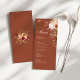 Tarjeta de menú de boda floral de terracota con tonos cálidos de naranja quemada y flores boho elegantes. Perfecta para presentar su menú de boda de manera elegante y cohesionada.