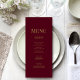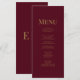 Mejora el ambiente de tus mesas de boda con nuestra Tarjeta de menú de boda minimalista con monograma de Borgoña. Con el menú en un lado y delicados monogramas en el otro sobre un sereno fondo de Borgoña. Esta tarjeta añade un toque de elegancia minimalista a la decoración de tu recepción.
