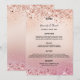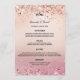 Una elegante y glamurosa tarjeta de menú de boda. Personalice y agregue sus nombres, fecha y menú de boda. Un fondo degradado de rosa y oro rosado, decorado con confeti.
