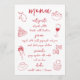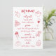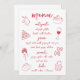 Comparte el menú de tu cena de ocasión especial con este hermoso diseño inspirado en Italia que presenta letras cursivas estilo manuscritas acentuadas con ilustraciones de comida dibujadas a mano en rojo tomate. Las ilustraciones incluyen pasta de moño, vino, limón siciliano, tomates, pizza, espaguetis en un tenedor, pasteles y café. Personaliza el título del menú y hasta cuatro platos.
