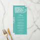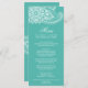 Esta verde azulada carta de menú paisley indio es perfecta para un boda moderno. El diseño del mehndi incluye una hermosa henna mandala floral y motivos paisley sobre un fondo turquesa. Este menú se puede utilizar para la recepción de bodas, la cena de ensayo o cualquier evento. Coincide este diseño con las piezas coordinadas en morado, turquesa, rosa y naranja en la Colección Boda Paisley Indio Colorida: https://www.zazzle.com/collections/119662428781277925.