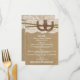 La rústica colección Kraft, lace & horseshoe presenta un diseño impresionante con un bonito fondo rústico de papel Kraft con un romántico efecto de encaje blanco con dos afortunadas herraduras entrelazadas y gemelos. Estos menús pueden ser personalizados para su ocasión especial y harían la plantilla de menú perfecta para cualquier boda rústico, ducha de novia, fiesta de compromiso, fiesta de cumpleaños y mucho, mucho más. *Tenga en cuenta que Zazzle sólo vende productos impresos para que este artículo no tenga ningún tipo de material de encaje, herradura o mellizos.