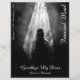 Este menú funeral tiene un diseño moderno y elegante oscuro, con un borde blanco alrededor de la parte delantera y trasera. La persona entra en la luz - adiós mi querido Los nombres, el texto y la fecha se pueden personalizar en la plantilla. Diseñado por pASob-dESIGN.