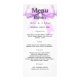 Carta de menú de la fiesta de cumpleaños. Personalice y agregue un nombre, edad, fecha y el menú. Un fondo blanco y un gran arco de lavanda de color violeta.