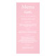 Carta de menú de la fiesta de cumpleaños. Personalice y agregue un nombre, edad, fecha y el menú. Un fondo rosa rubor. Letras de color blanco. Atrás: agrega una foto del chica de cumpleaños, hechos divertidos.