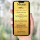 Tarjeta de menú de la fiesta de cumpleaños tanto para él como para ella. Personalice y agregue un nombre, edad, fecha y el menú. Un falso fondo dorado. Letras de color negro. Atrás: agrega una foto del tipo de cumpleaños, datos divertidos