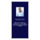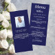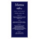 Carta de menú de la fiesta de cumpleaños. Personalice y agregue un nombre, edad, fecha y el menú. Un color de fondo azul marino. Letras de color blanco. Atrás: agrega una foto del tipo de cumpleaños, datos divertidos