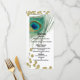 Tarjeta de menú de fiesta Boho Glam de plumas de pavo real y oro. Están disponibles artículos coincidentes en este diseño.
