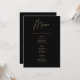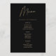 Presente su banquete de celebración con el máximo prestigio utilizando esta Tarjeta de Menú de Cumpleaños 21 Moderno Negro y Dorado. Diseñado específicamente para una gala sofisticada de "Nivel 21" o una cena exclusiva para celebrar el hito de "Legal por Fin", este menú premium aporta un toque de alta gama y diseño a su decoración de mesa.