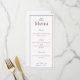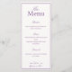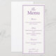 Agregue un toque de elegancia a su experiencia gastronómica con este menú bellamente diseñado en suave lila y blanco crujiente. Su delicada combinación de colores crea un aspecto encantador y sofisticado, perfecto para bodas, fiestas o cualquier ocasión especial. Simple, elegante y visualmente agradable, este menú aporta belleza a su mesa mientras muestra sus ofertas de manera clara y elegante.