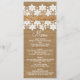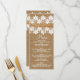 Tarjeta de menú de matrimonio rústico de encaje y