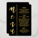 tarjeta de menú de colección de boda real dorada y negra con diseño minimalista único y elegante