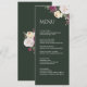 Tarjeta de menú de peonías modernas esmeralda verd