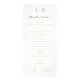 Tarjeta de menú de caligrafía de guión verde sabio y boda de iniciales.