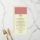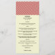 Disponga los detalles de su menú de cena boda y consiga que todos se entusiasmen con la promesa de una comida excelente. El diseño rojo y crema del Ripple presenta un patrón geométrico con temática de "momentos pequeños que conducen a momentos grandes" con un vistazo de rayas curvadas.