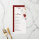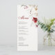 Deleite a sus invitados con las deliciosas ofertas de su banquete de bodas de invierno con nuestra exquisita Tarjeta de Menú "Elegancia de Invierno Borgoña". Una cautivadora adición a la decoración de su boda, esta tarjeta de menú muestra un hermoso arreglo de delicadas flores en la esquina superior derecha, preparando el escenario para una experiencia gastronómica inolvidable.
