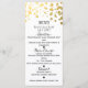 Tarjeta de menú elegante con confeti blanco y dorado falso