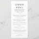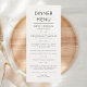 Menú moderno y elegante de boda, fiesta o aniversario. Un diseño elegante en negro y blanco o cualquier color de fondo que elijas. Simplemente haz clic en el enlace personalizar más, que se muestra debajo del área de personalización de texto a la derecha, y elige el fondo de color personalizado. Esta plantilla de cartel hace que sea rápido y fácil crear adiciones impresionantes para el decorado de tu boda. Los carteles se pueden reducir, hay muchas medidas para elegir, así como opciones para enmarcar y poner paspartú personalizados.