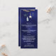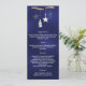 Fondo azul marino, madera marrón y decoración de Navidades azules y blancos. El color de fondo azul es desigual. Estrellas azules y blancas, y una mujer gnomo azul. Personalice y agregue su menú.
