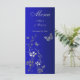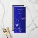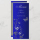 Esta carta de menú de azul real, azul marino y gris plateado tiene mariposas plateadas y flores en ella que coinciden con la invitación a la boda que se muestra a continuación. Está diseñado en una tarjeta de rack con un frente brillante y acabado mate en la parte posterior. Si desea una tarjeta de menú en el papel de invitación de lino para que coincida con sus invitaciones, o si tiene alguna solicitud de artículos o cambios adicionales, envíe un correo electrónico a niteowlstudio@gmail.com con su solicitud.