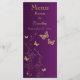 Esta carta floral morada y dorada tiene mariposas y flores en purpurina de oro morado y FAUX (simuladas) que coinciden con la invitación a la boda que se muestra a continuación. Está diseñado en una tarjeta de rack con un frente brillante y acabado mate en la parte posterior. Si desea que una tarjeta de menú en papel de invitación coincida con sus invitaciones, o si tiene alguna solicitud de artículos o cambios adicionales, envíe un correo electrónico a niteowlstudio@gmail.com con su solicitud.