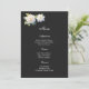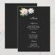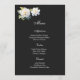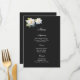 La tarjeta de menú se muestra con una encantadora flor de gardenia en el papel de tarjeta de firma en color negro.