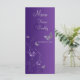 Tarjeta de menú floral de mariposa morada plateada