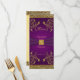 Esta tarjeta de menú floral de color púrpura y dorado con un listón de FAUX morado, medallón de oro y fondo texturado FAUX coincide con la invitación a la boda que se muestra a continuación. Está diseñado en una tarjeta de rack, por lo que la parte delantera está brillante y la parte posterior tiene un acabado mate. Si desea una tarjeta de menú en papel metálico para que coincida con su invitación, o si tiene alguna solicitud de artículos o cambios adicionales, envíe un correo electrónico a niteowlstudio@gmail.com con su solicitud.