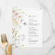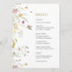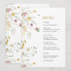 Esta romántica menú cuenta con flores silvestres rosadas y amarillas pintadas a la acuarela, manzanilla rústica, hojas verdes y ramitas.